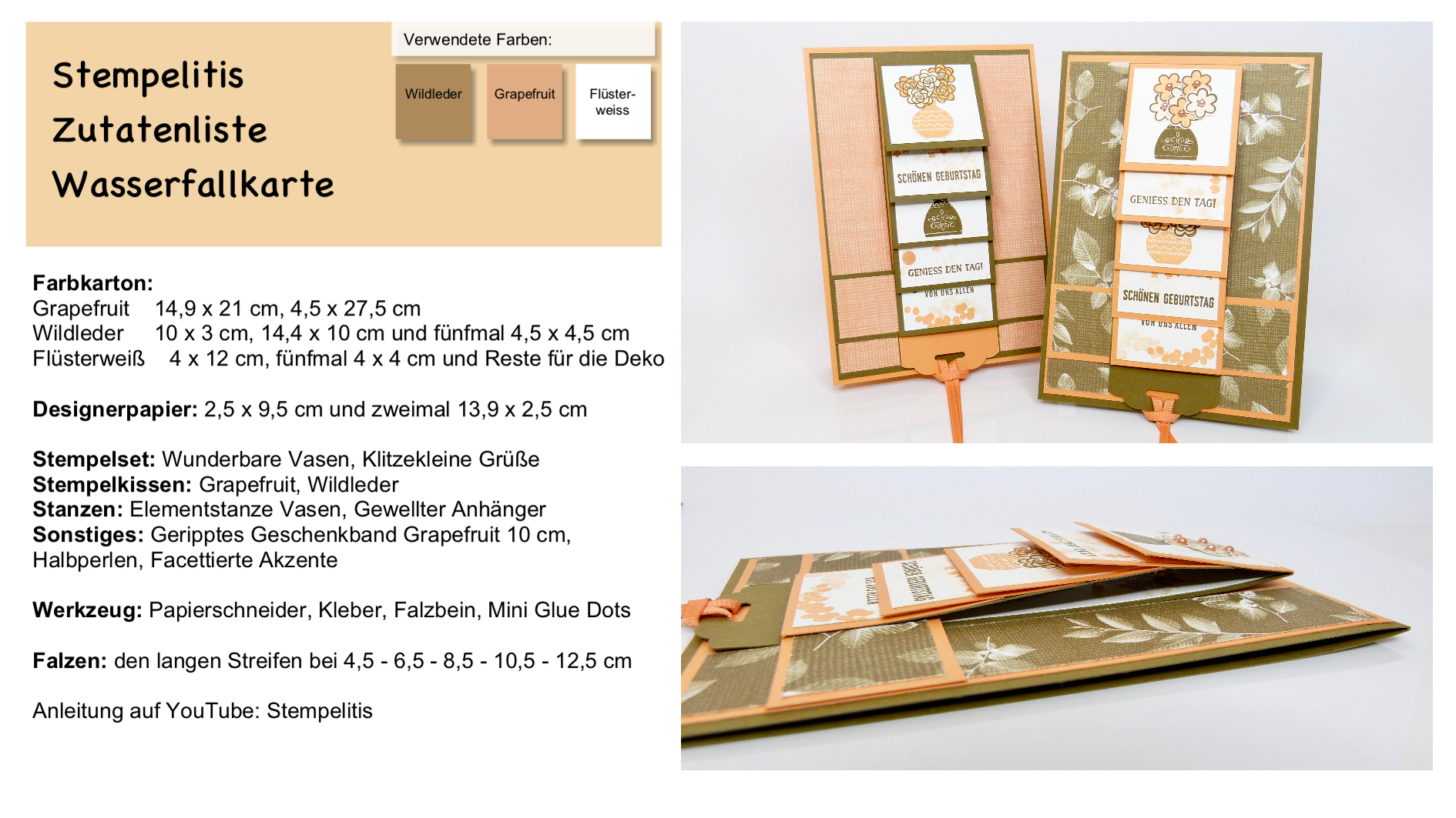 Zutatenliste Wasserfallkarte Anleitung auf YouTube