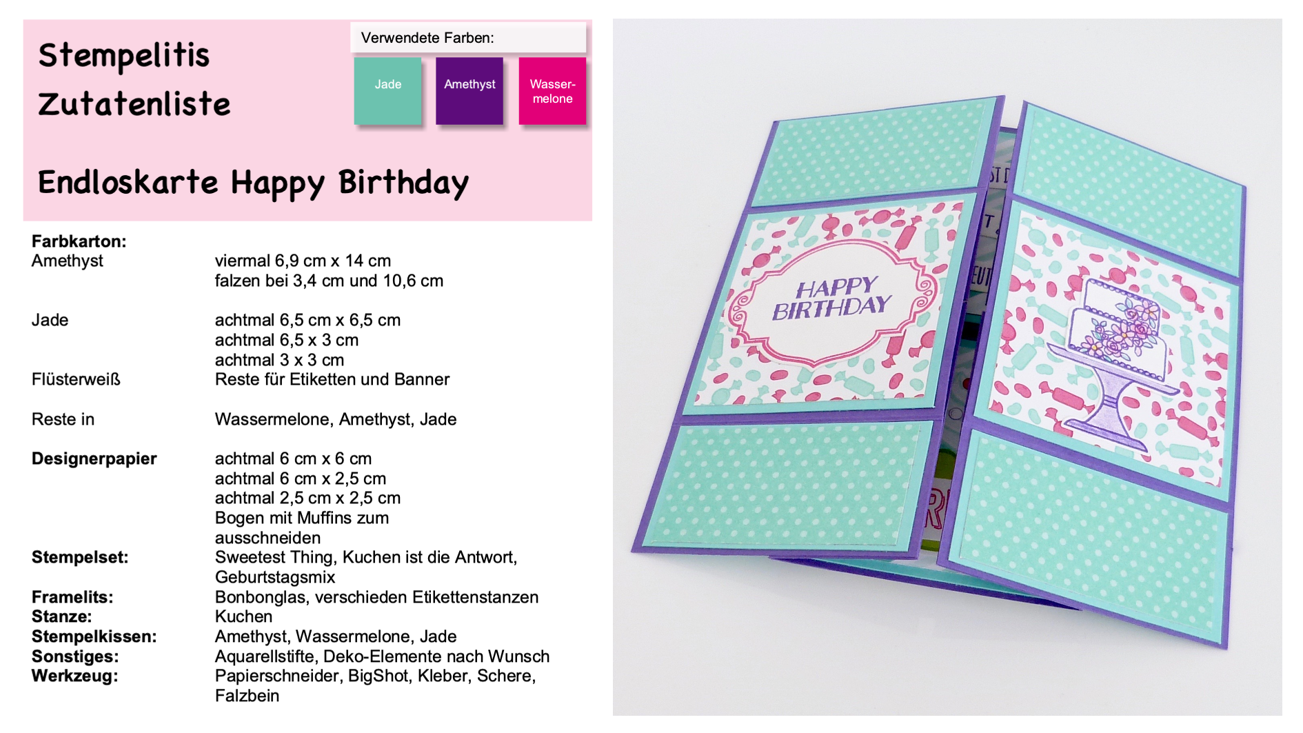 Eine Endloskarte mit den Produktpaketen Süsse Überraschung und Kuchen ist die Antwort. Lass dich verzaubern von dieser besonderen Kartenform!