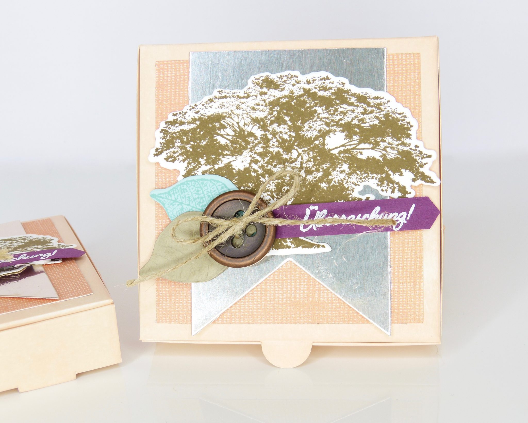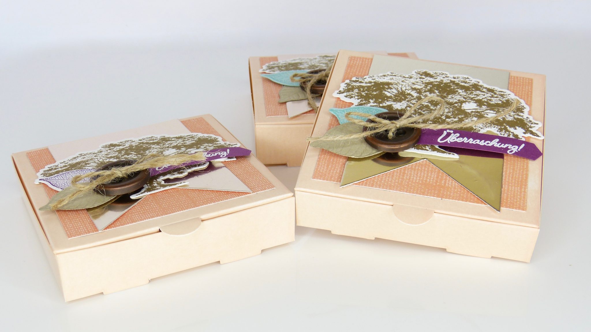 Das ist auch der Grund, warum ich gar nicht mehr damit aufhören konnte. Statt ein, zwei Boxen hatte ich plötzlich 10 Stück davon mit dem Stempelset Kraft der Natur verschönert.