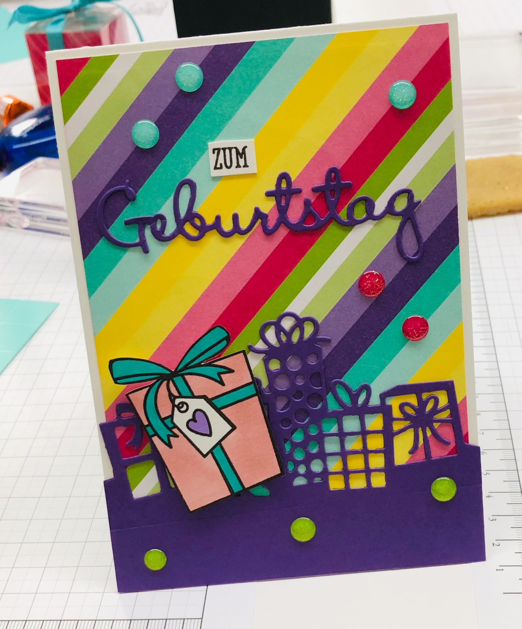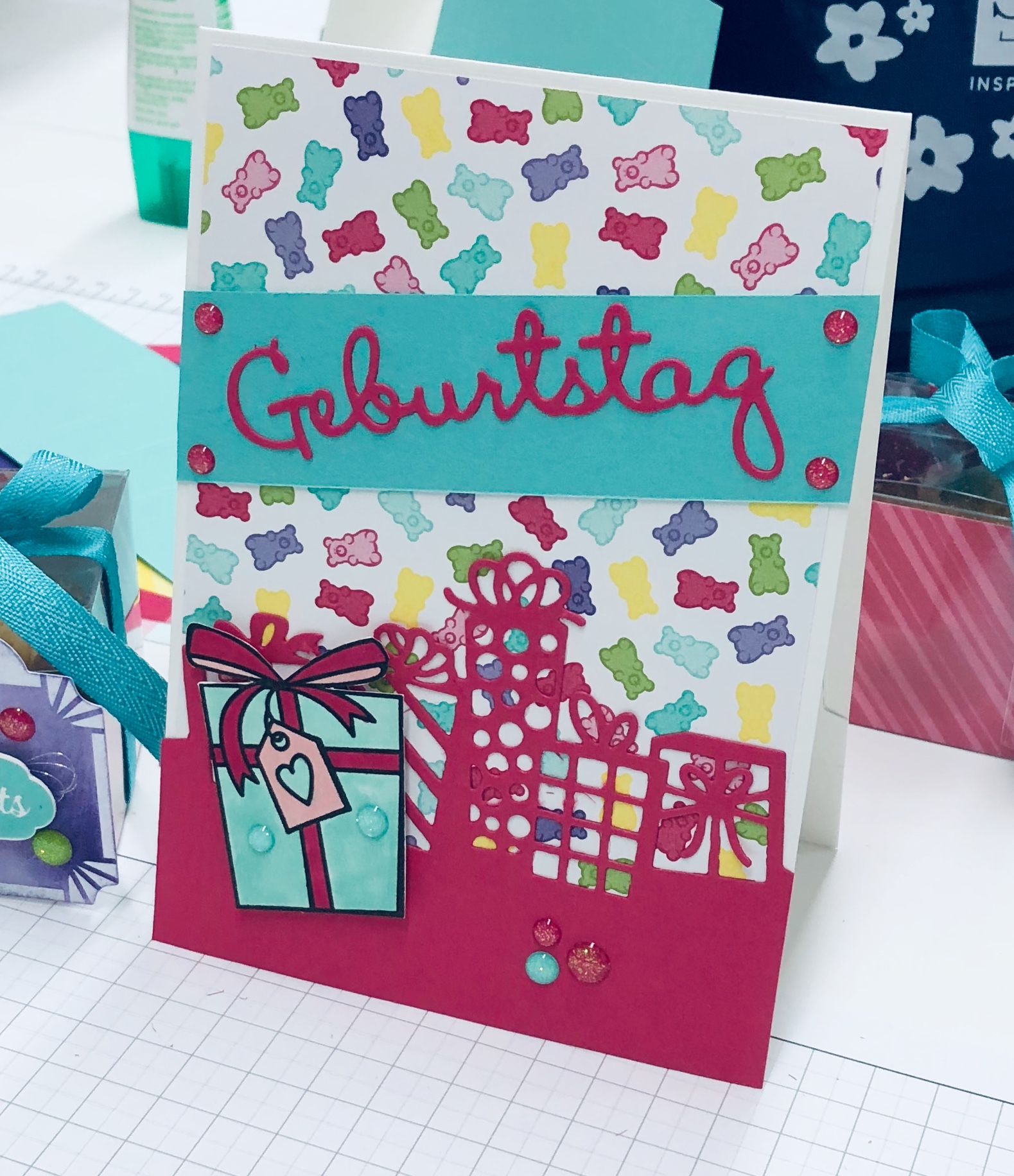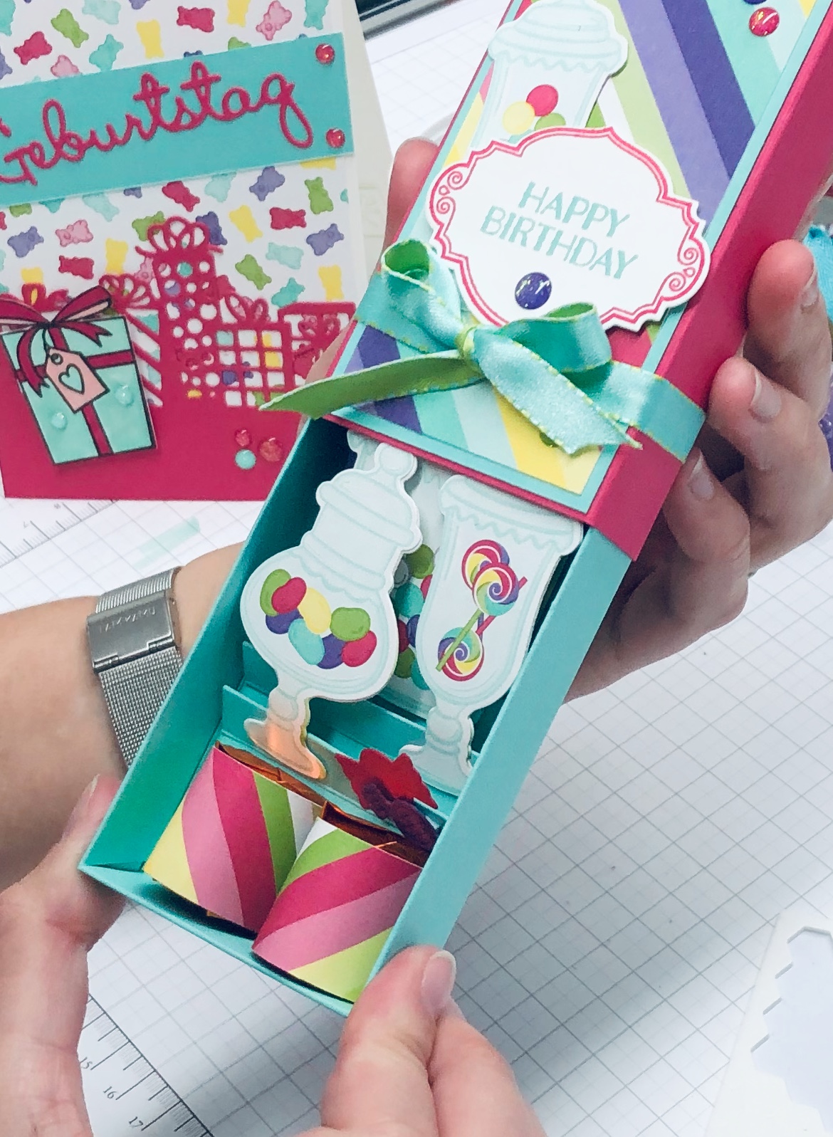 Beim Workshop Geburtstag am letzten Freitag hat die BigShot geglüht… Meine Teilnehmer haben zwei Projekte gebastelt, zu denen ich auch jeweils ein Videotutorial gemacht habe. Falls du es noch nicht gesehen hast: Hier kannst du das Video zur Geburtstagskarte mit Gutscheinfach anschauen und hier das Video zur Pop-Up Box.